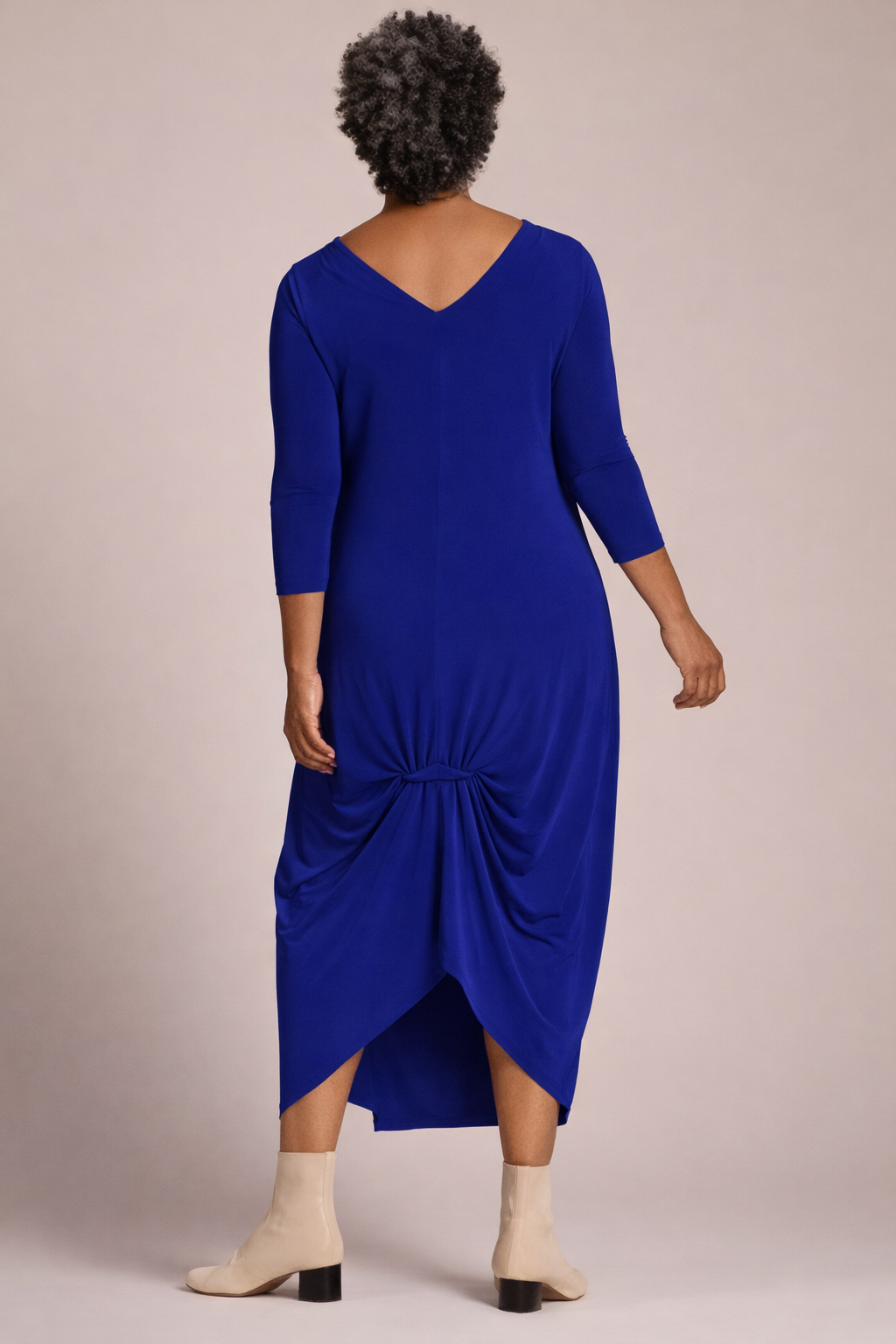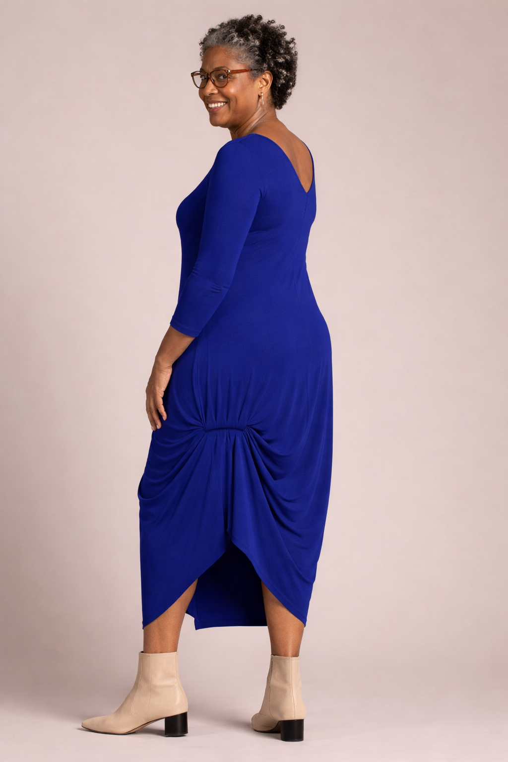 Designed with a womans shape and needs in mind, the Sympli Drama Dres, is crafted with a fluid fabric to create a beautiful, flattering silhouette and reversible crew or V-neck. This dress is ideal for any occasion, offering a front drape to conceal any perceived imperfections.