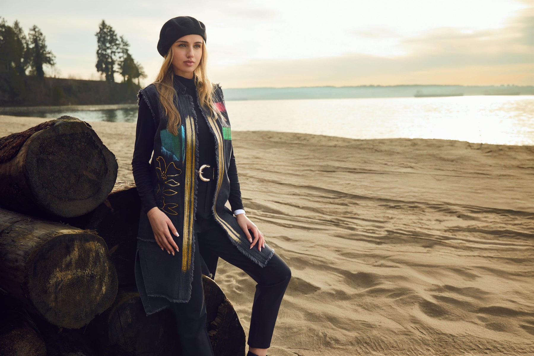 Elevate your wardrobe with this Frank Lyman denim vest, ideal for both casual outings and dressier events. It showcases a collared neckline and sleeveless cut in a comfortable regular fit, enhanced by a unique abstract pattern that adds a bold, boho touch. The extended length and zipper closure combine style with convenience, while the extra pockets and jewel accents offer both practicality and a hint of sparkle.
