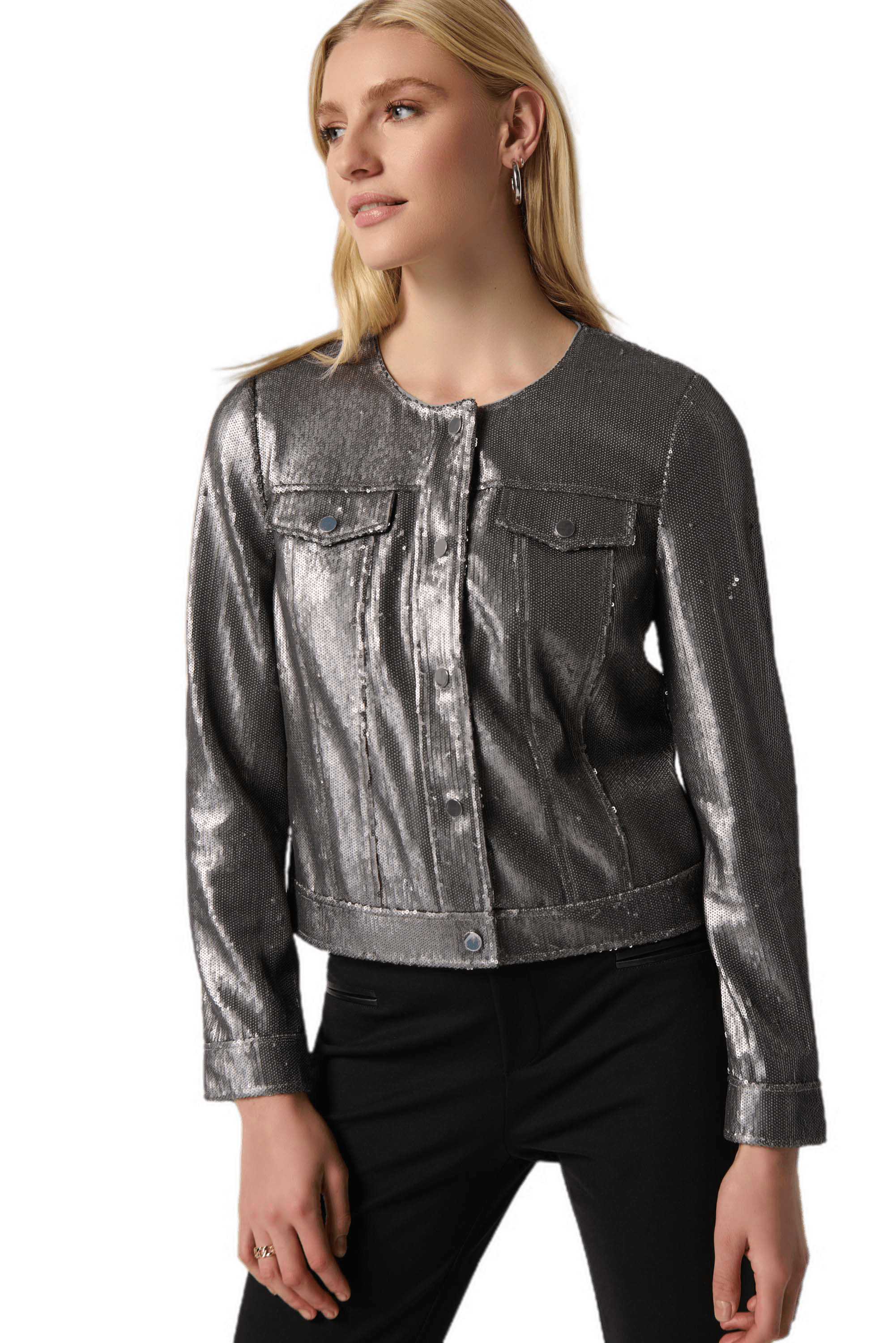 Sequin Jacket with Faux Pockets