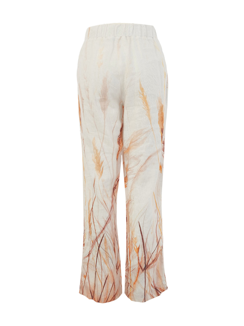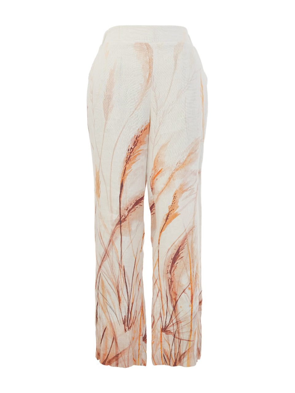 Easy, breezy, and effortlessly polished, these wide-leg pants bring an artistic feel to everyday dressing. Designed with a relaxed silhouette and flowy movement, they feature a soft neutral print inspired by sun-washed grasses and natural textures. The pull-on style makes them easy to wear, while the wide leg adds a flattering, modern finish. Perfect for pairing with simple tops and sandals for a chic warm-weather look.