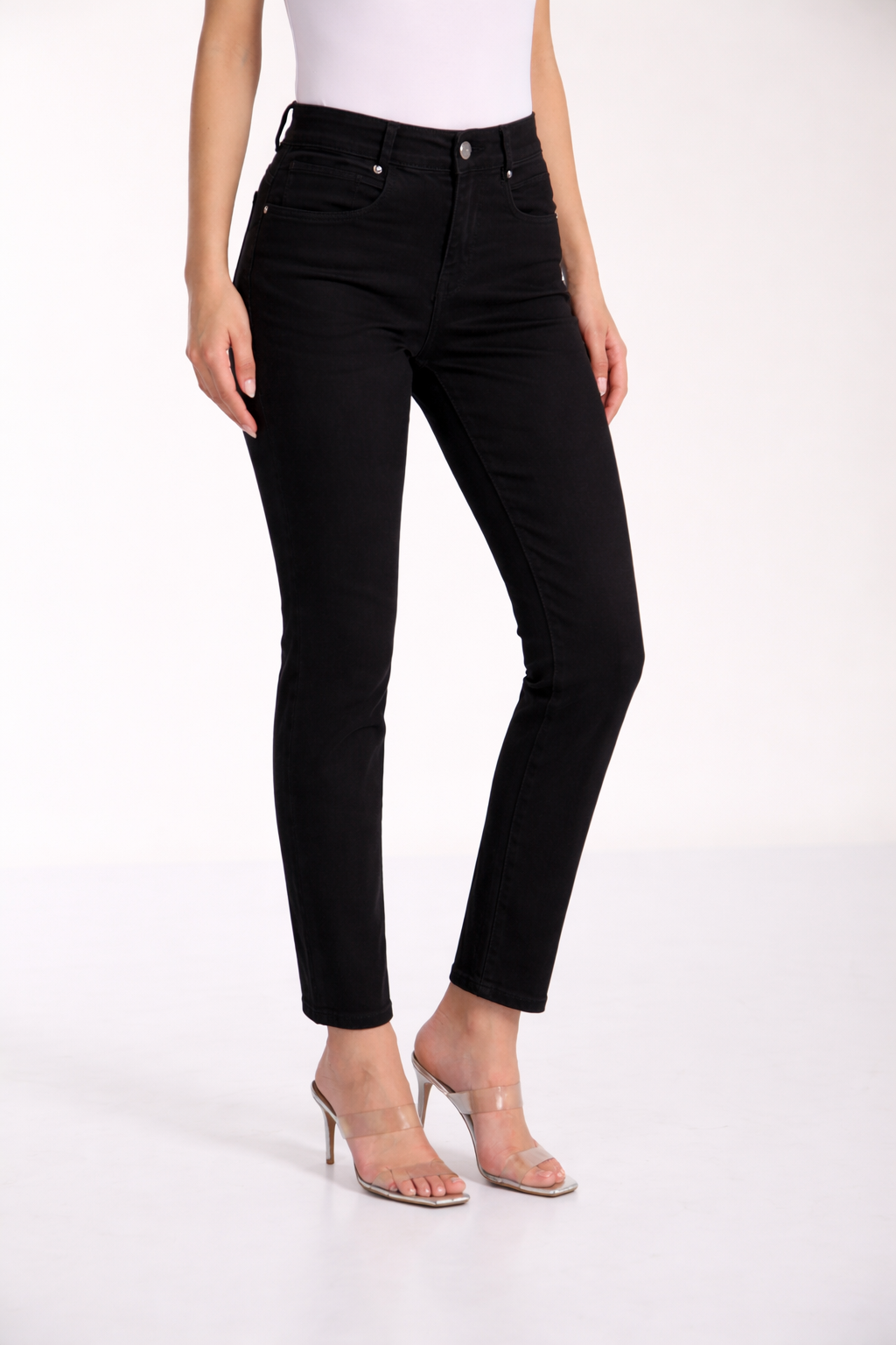 Love the shape of the Jeans on me. The cut close to the zipper made it such that the fold on top doesn’t cover entirely the zipper . So I have to wear a sweater that covers it. They added a band inside the waist which keeps them snuggle to the body.