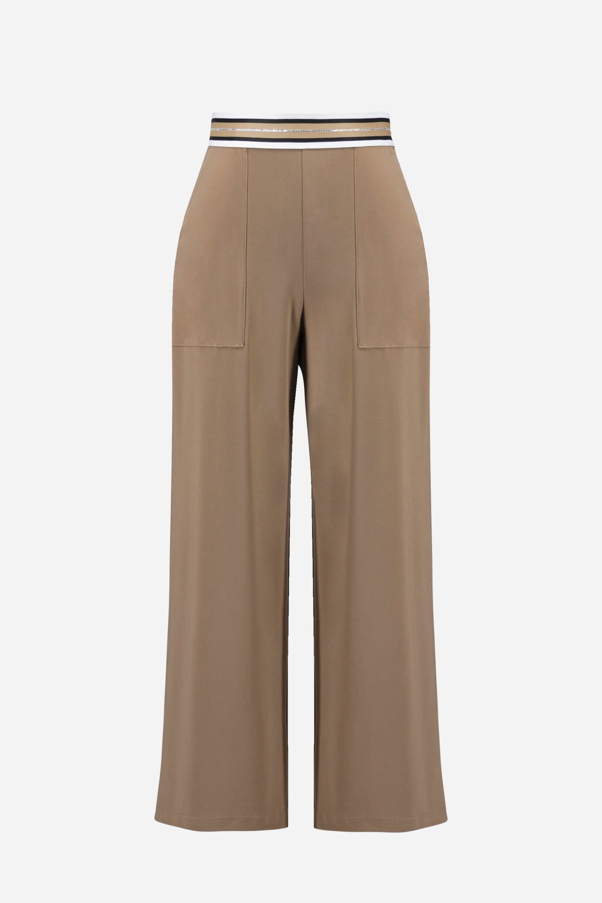 Silky Knit Wide Leg Pull-On Pants With Stripe Waistband Joseph Ribkoff