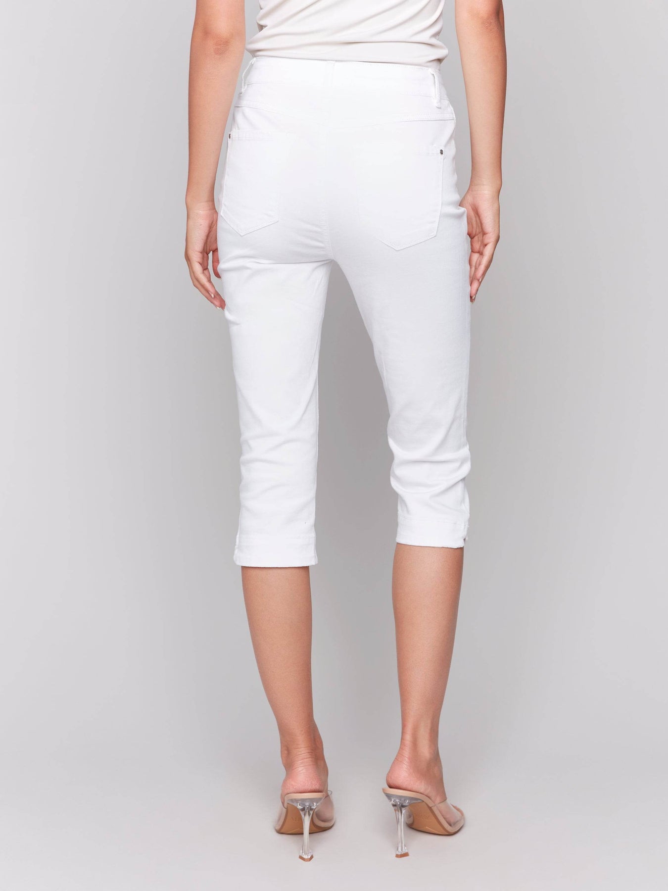 Adoptez la polyvalence de notre pantalon Capri en denim arrivant au genou ! Élégant et confortable, ce pantalon se porte aussi bien de jour que de nuit et deviendra vite un incontournable de votre garde-robe. De plus, son denim de haute qualité garantit une grande durabilité. Préparez-vous à faire sensation et à vous sentir confiante en toutes circonstances !