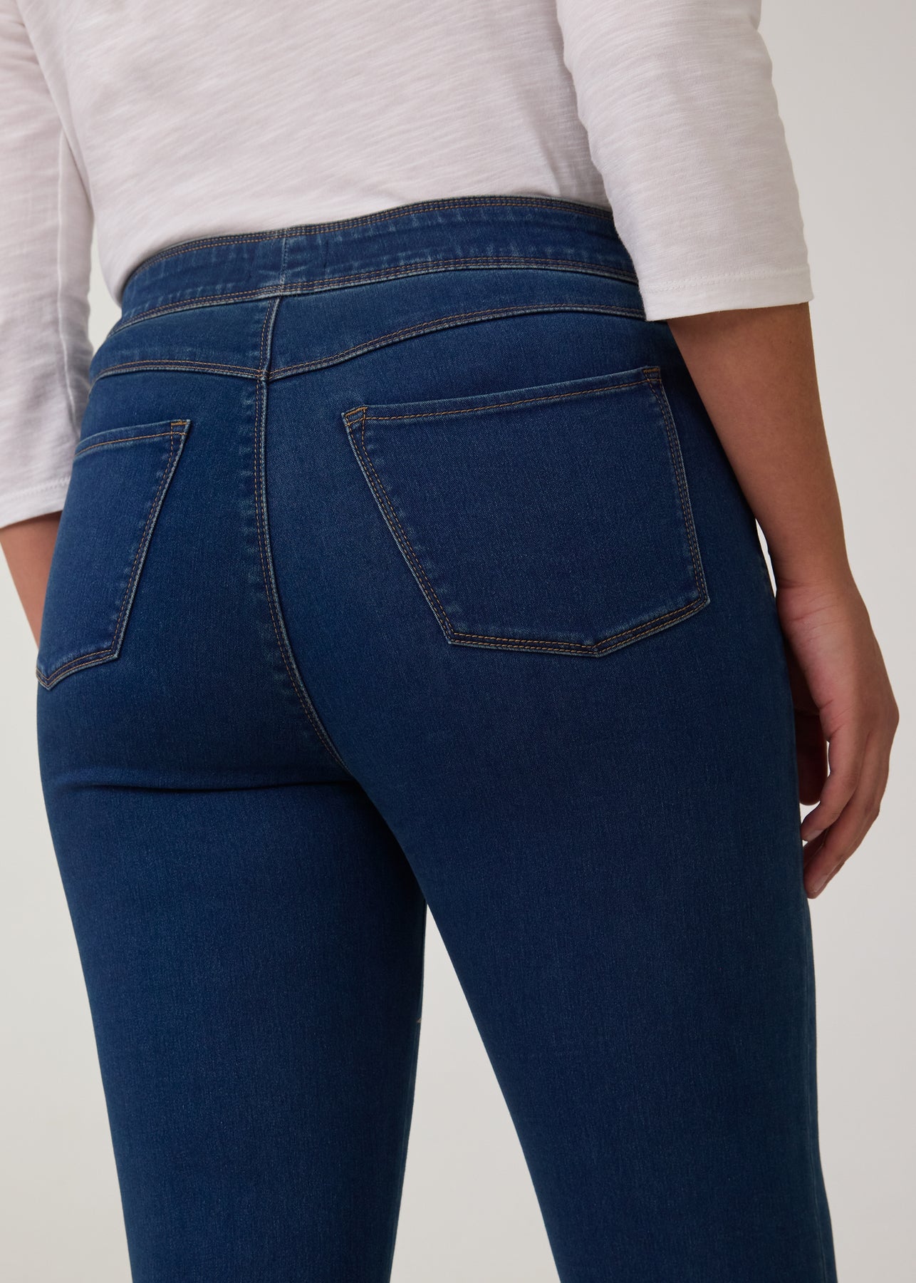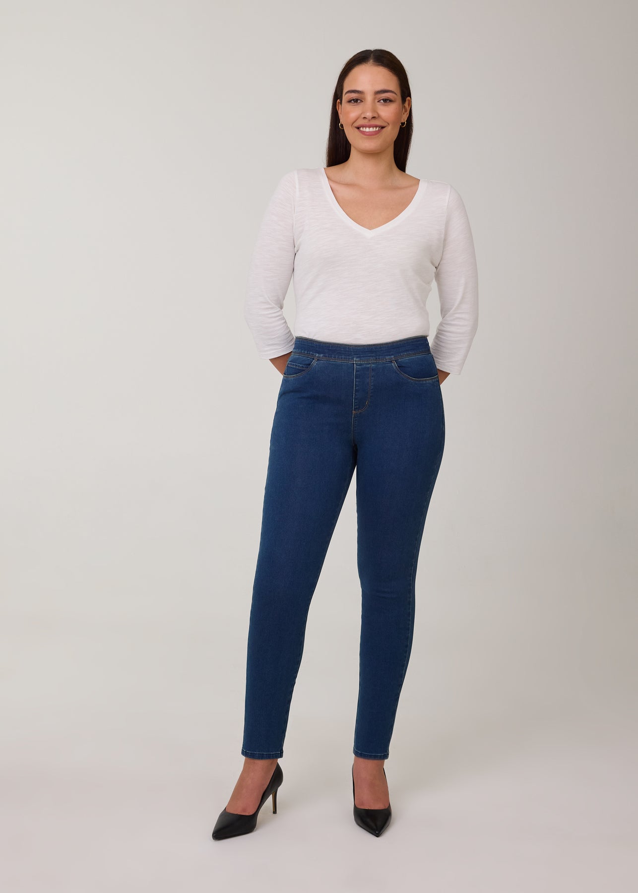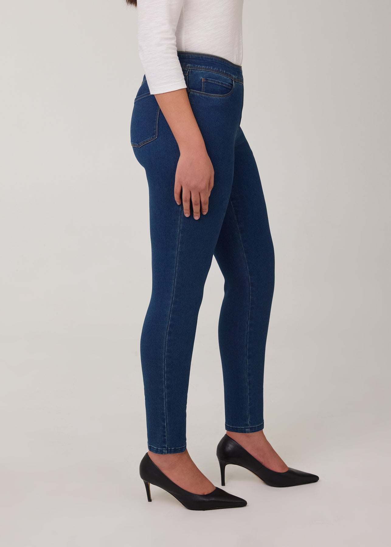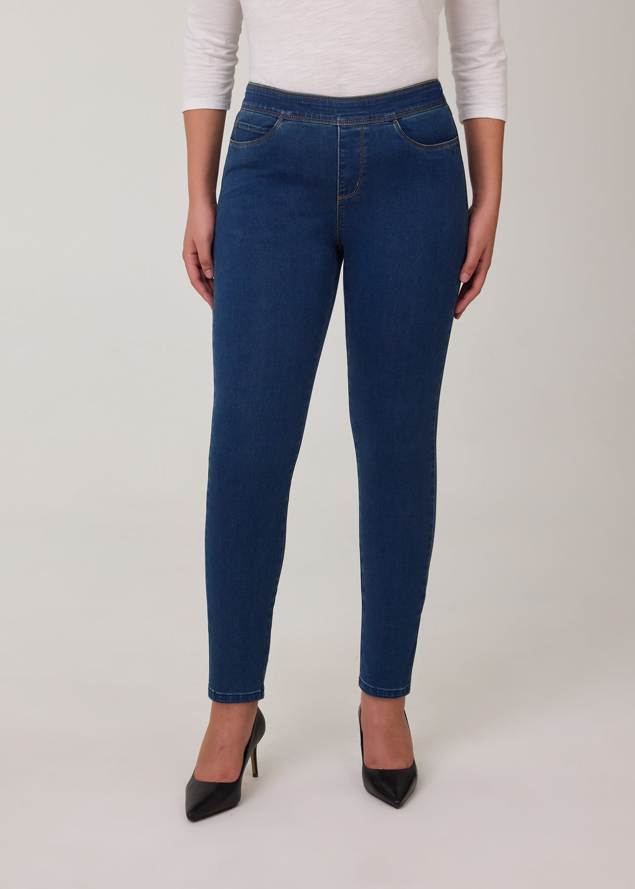 Sleek, comfortable, and effortlessly polished—the Pull-On Slim Ankle D-Lux Denim is designed for easy everyday wear. Featuring a streamlined pull-on design, this style offers a smooth, flattering fit without the bulk of traditional closures. The slim ankle silhouette creates a clean, modern look crafted from soft stretch denim with a comfortable elastic waistband. It moves with you while maintaining its shape—making it your go-to for all-day confidence and style.