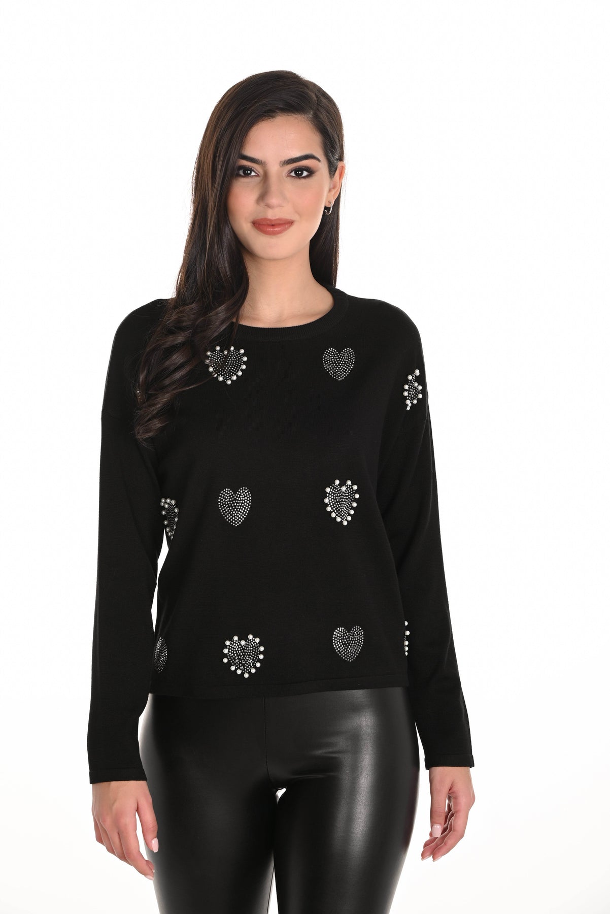 Découvrez un style décontracté avec le pull Frank Lyman Casual Heart. Sa coupe ample et sa longueur aux hanches en font le vêtement idéal au quotidien comme pour les occasions spéciales. Doté d'un col rond classique et de manches longues droites, ce pull est sublimé par des détails scintillants formant un charmant motif de cœur. Un choix parfait pour celles qui apprécient une élégance discrète, un incontournable de votre garde-robe.