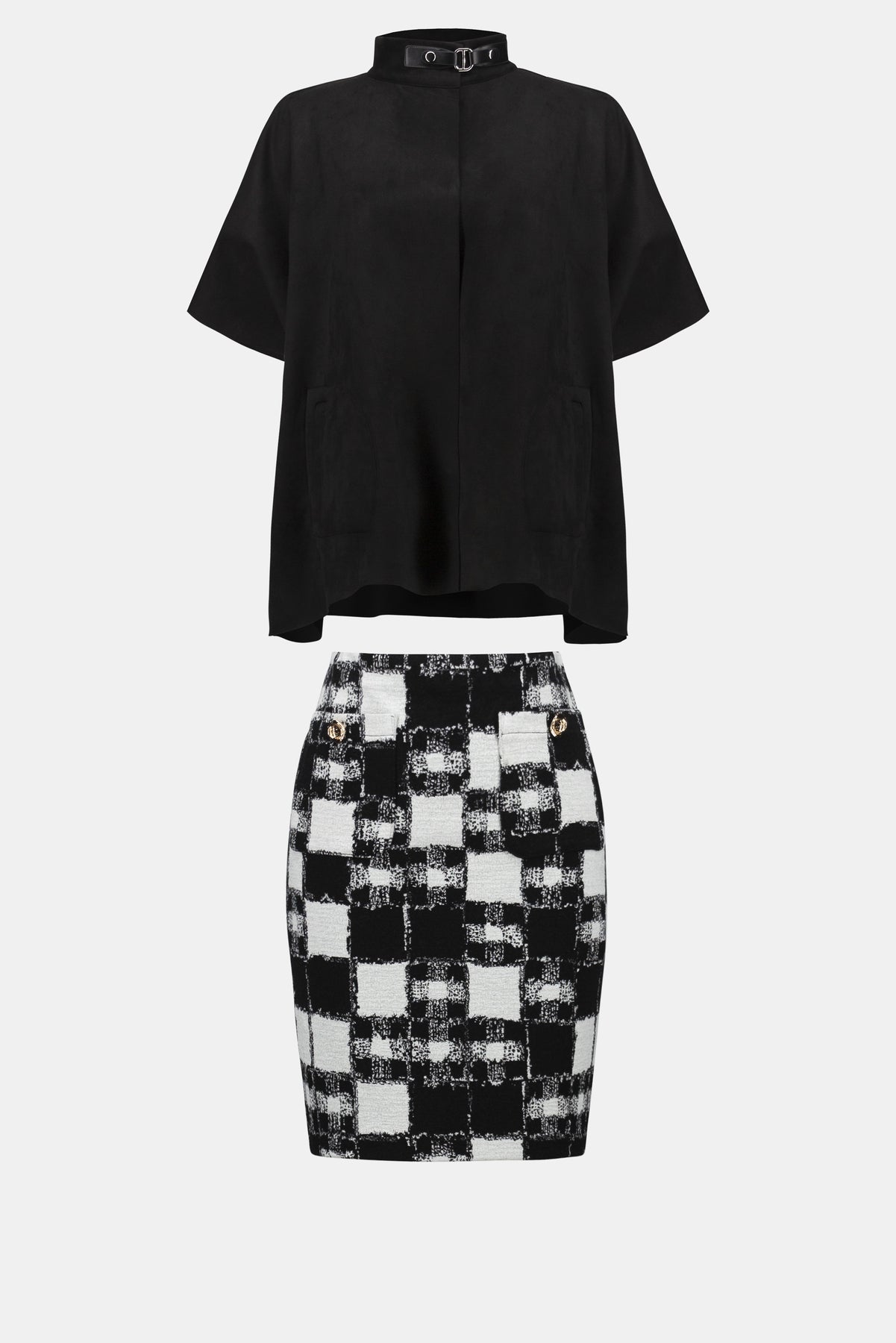 Apportez une touche de modernité à votre tenue de travail classique avec cette jupe en maille jacquard à enfiler. Un magnifique imprimé à carreaux orne le tissu, conférant à la pièce un style irrésistiblement chic. D'élégantes poches avant boutonnées ajoutent une note de glamour à ce modèle raffiné.