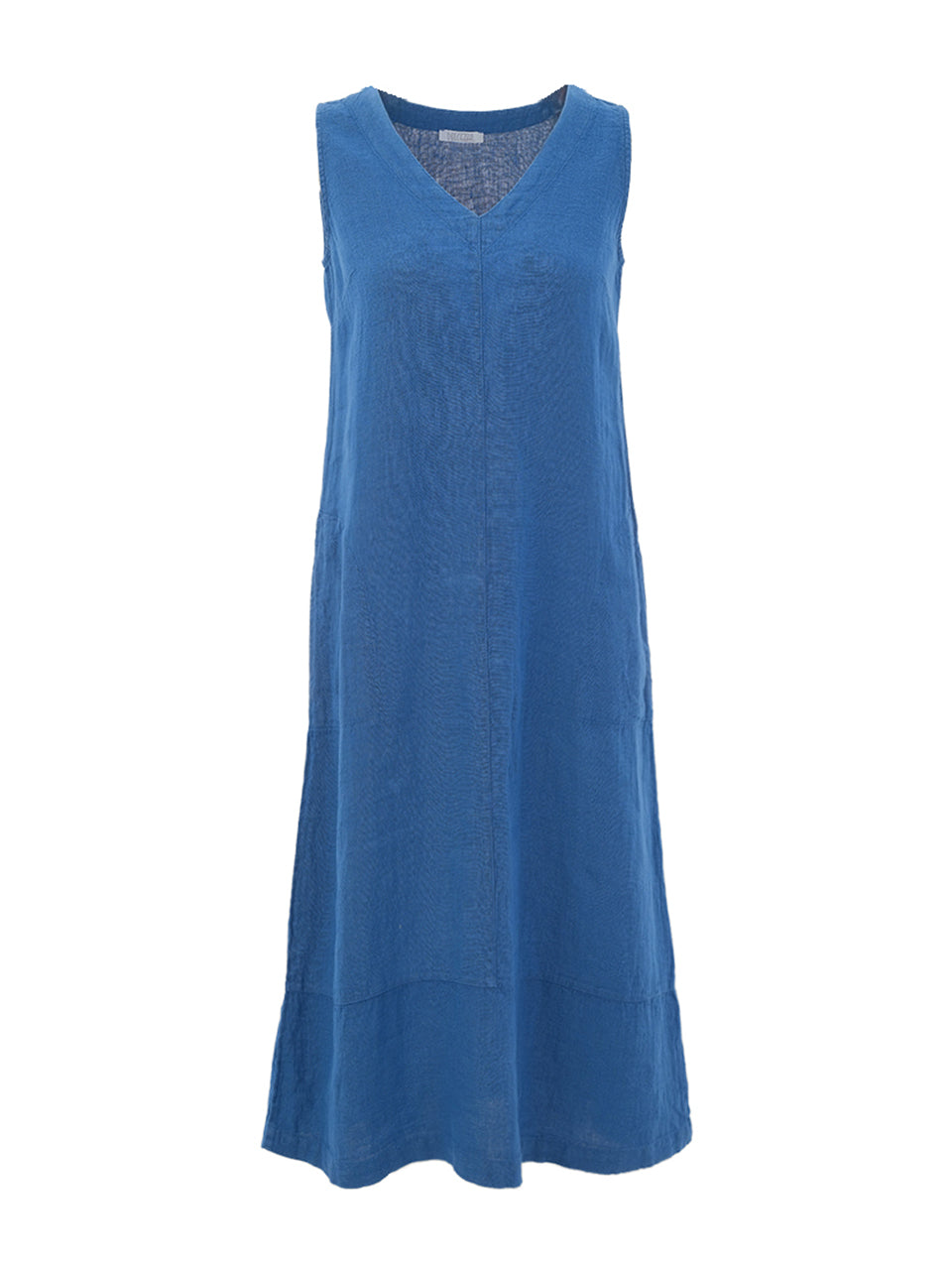 Sans effort et respirante, cette robe ample en lin est conçue pour la légèreté des journées chaudes. Dotée d'un décolleté en V net et d'une silhouette sans manches, elle drape le corps en douceur pour un ajustement confortable et aérien. Des détails de panneaux subtils ajoutent une structure délicate tout en conservant son allure décontractée. Légère et naturellement texturée, c'est une pièce intemporelle qui passe sans problème des journées décontractées à un style élégant et facile.