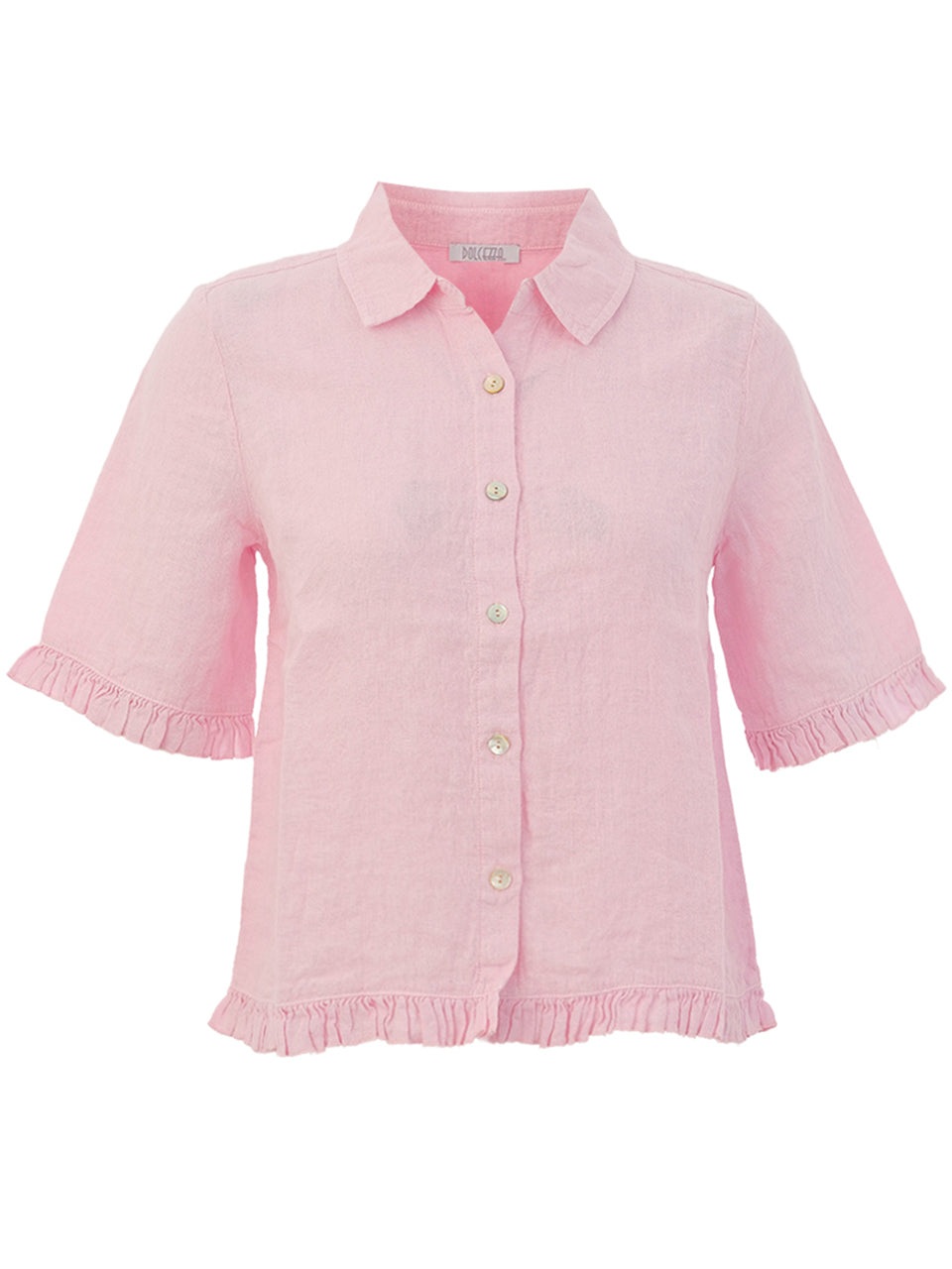 Légère, aérienne et naturellement élégante, cette chemise en lin est conçue pour les journées ensoleillées. Dotée d'un col classique et d'une patte de boutonnage, elle est ornée de volants délicats aux manches et à l'ourlet pour une touche féminine. Le tissu en lin respirant offre une texture naturelle, tandis que la coupe décontractée tombe magnifiquement pour un confort tout au long de la journée. Facile à coordonner, elle s'associe parfaitement avec tout, du pantalon ajusté au jean décontracté, pour un look raffiné mais décontracté.