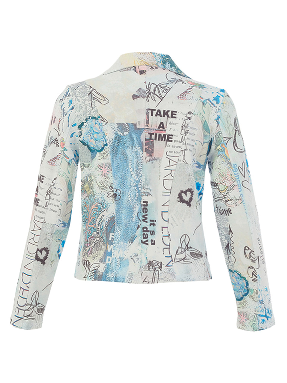 Un blouson moto audacieux orné d'un imprimé inspiré d'un collage qui mêle des croquis artistiques à des éléments graphiques modernes. Doté d'une fermeture éclair asymétrique, d'un revers structuré et d'une coupe ajustée flatteuse, il ajoute une touche d'audace instantanée à n'importe quelle tenue. Léger et polyvalent, il se superpose sans effort sur les essentiels du quotidien tout en apportant une finition audacieuse et créative à votre look.