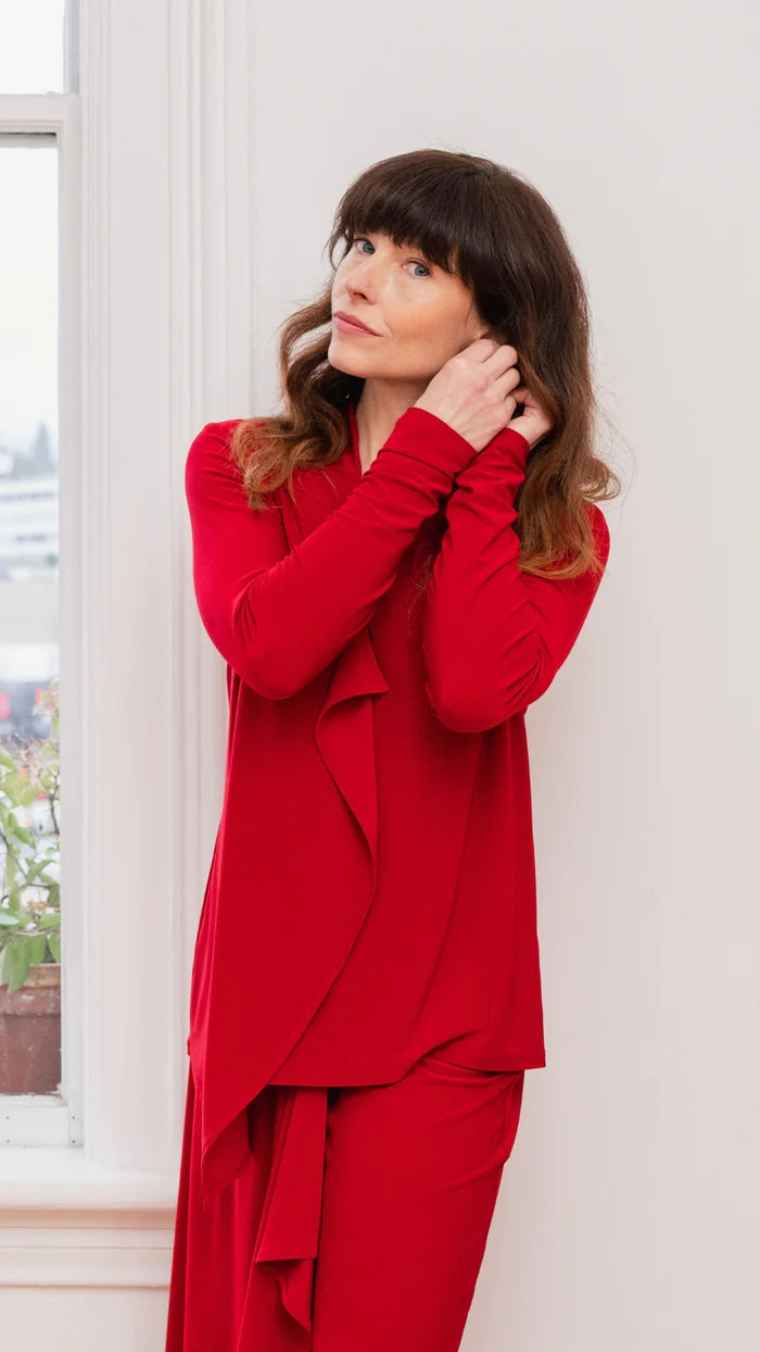 Le top Tempo se distingue par son décolleté en V original et son ourlet asymétrique élégant, plus long d'un côté, apportant une touche de modernité à votre garde-robe. Ses manches longues offrent une couvrance polyvalente, idéale à superposer ou à porter seules. Conçu pour allier confort et style unique, ce top rehausse instantanément n'importe quelle tenue, ce qui le rend parfait pour les occasions décontractées comme habillées. Affirmez votre style avec l'asymétrie audacieuse et la silhouette flatteuse du top Tempo.