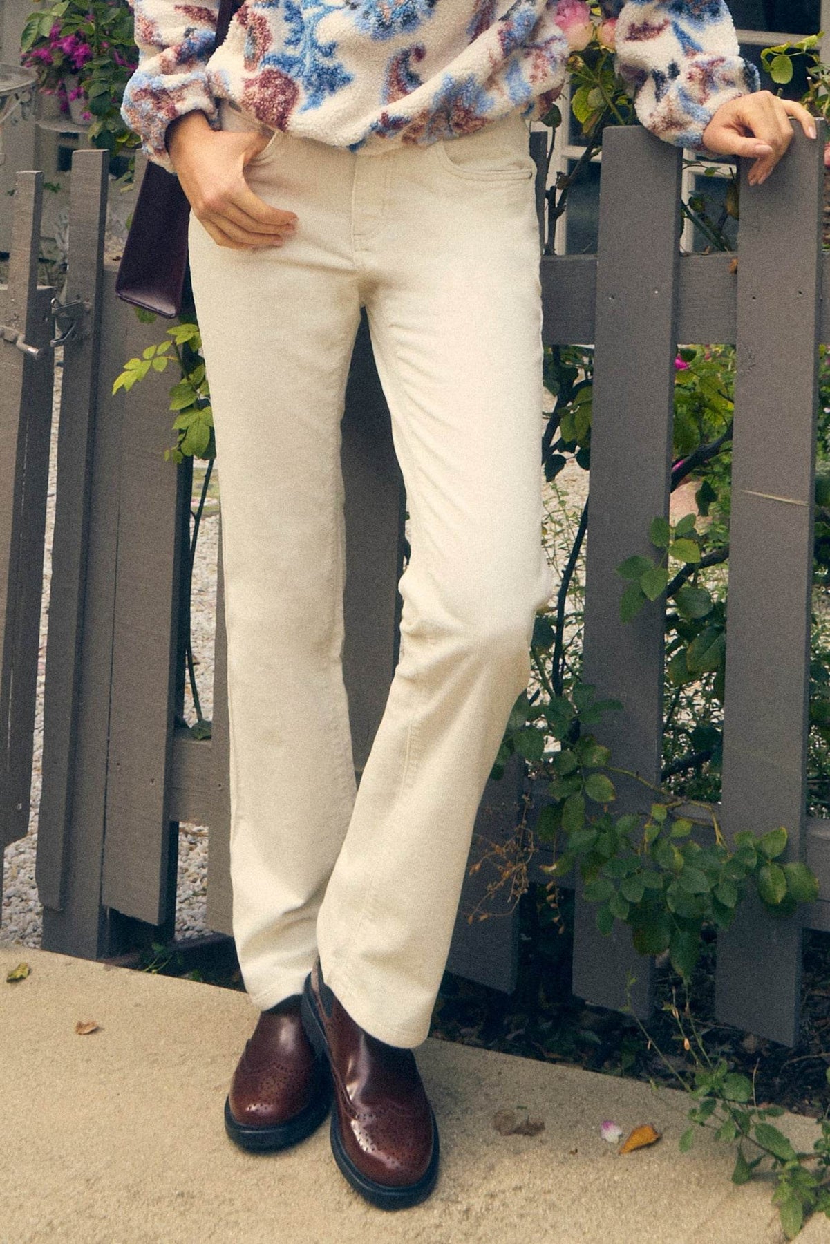 Sublimez votre garde-robe d'automne avec le jean Olivia Bootleg, confectionné dans un velours doux qui apporte chaleur et sophistication à toutes vos tenues. Sa coupe classique taille mi-haute et sa silhouette bootcut flatteuse épousent vos courbes avec élégance tout en vous offrant confort et liberté de mouvement. Sa texture moelleuse lui confère une sensation de douceur incomparable, idéale pour un look décontracté ou plus habillé. Portez-le avec un pull en maille épaisse ou un chemisier élégant pour une allure sophistiquée sans effort.