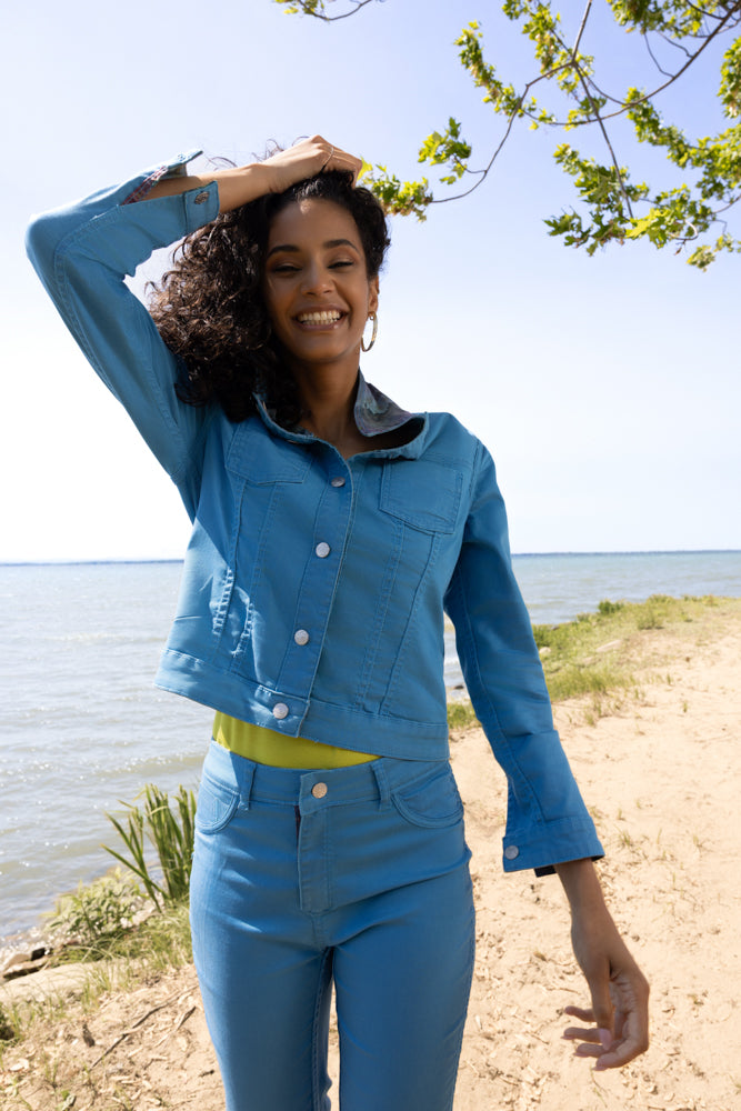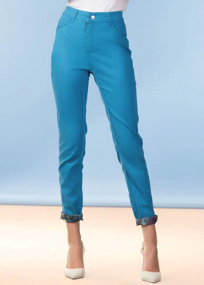 Un jean réversible qui offre deux styles distincts en une seule pièce. Avec un imprimé floral éclatant d'un côté et une couleur unie classique de l'autre, ce pantalon vous permet de changer de look en un clin d'œil. Sa coupe slim, arrivant à la cheville, flatte la silhouette tout en restant moderne, et son tissu stretch intégré assure un confort optimal tout au long de la journée. Une pièce polyvalente, une infinité de possibilités de tenues.