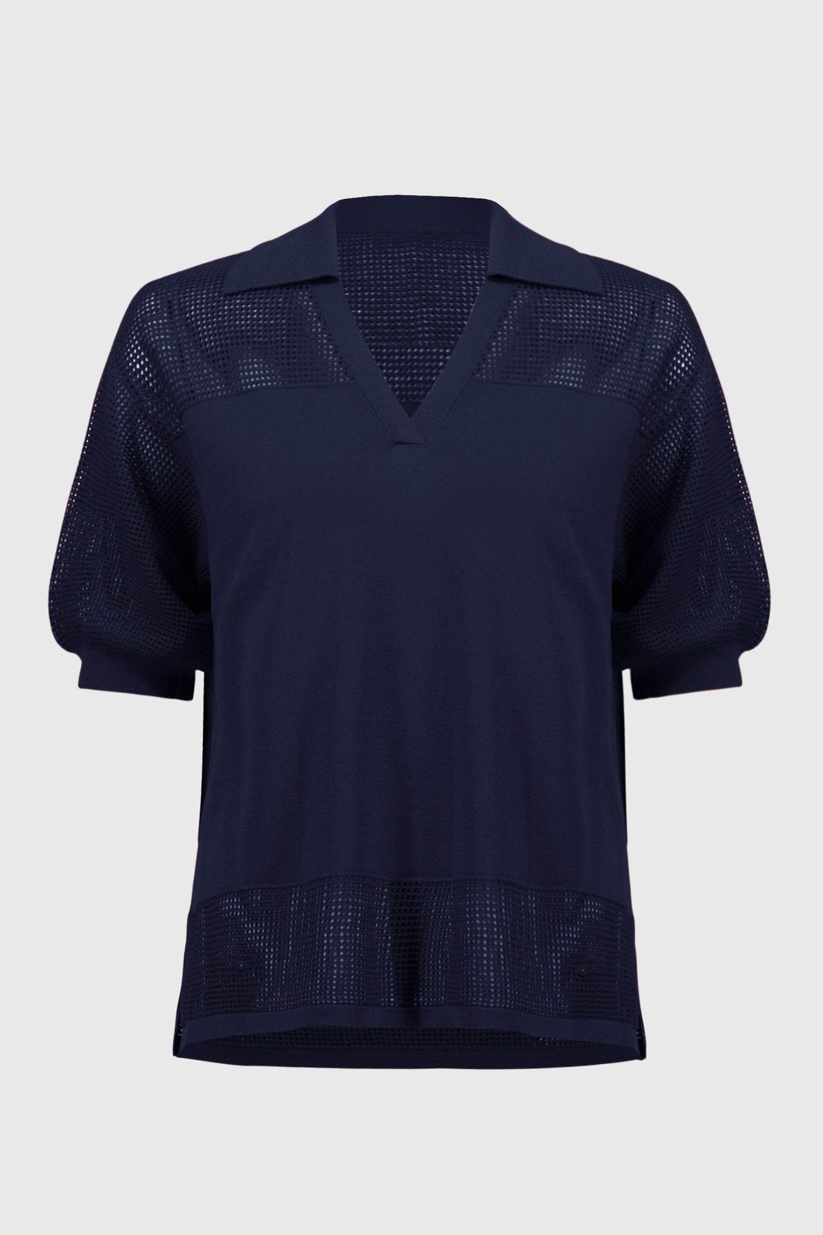 Confectionné avec soin et orné de délicates surpiqûres ajourées et d'un col polo classique, ce pull en maille est un incontournable de votre garde-robe. Fabriqué dans un tissu léger, il arbore une coupe droite élégante et confortable, pour un ajustement parfait.