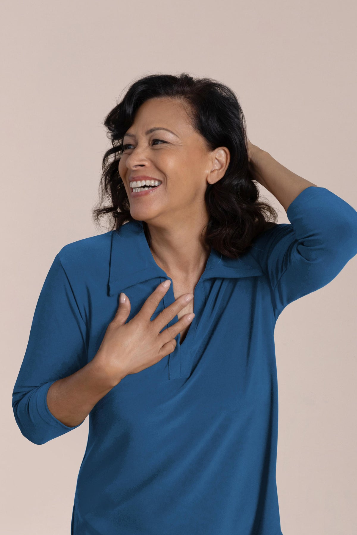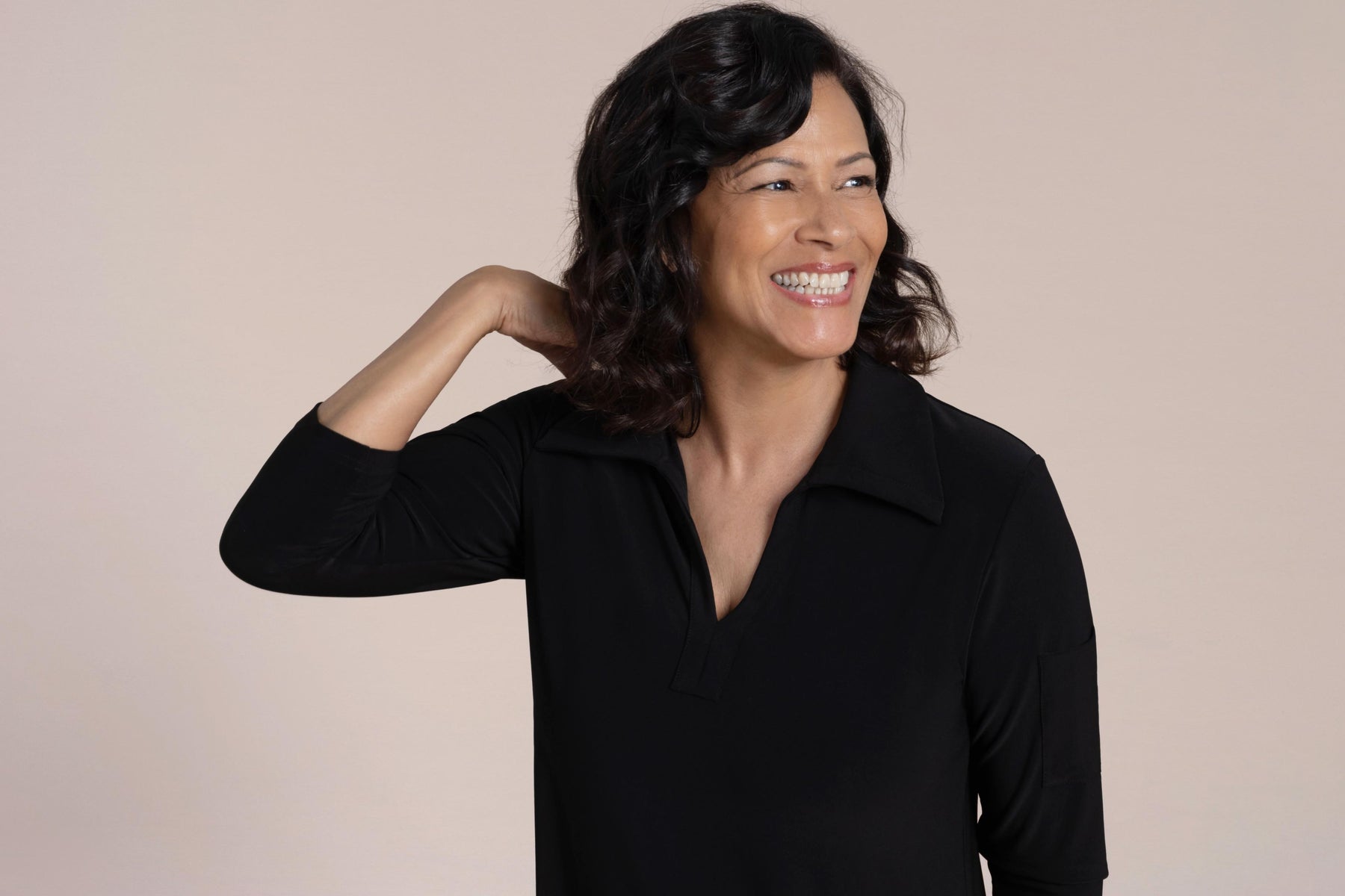 Découvrez un confort et un style incomparables avec notre top Weekender. Doté de manches 3/4, d'un col en V et de fentes latérales, ce top est un incontournable de toute garde-robe.
