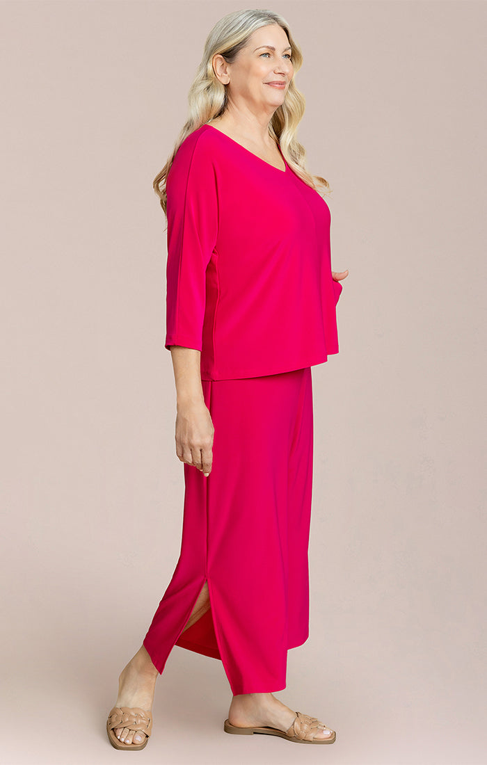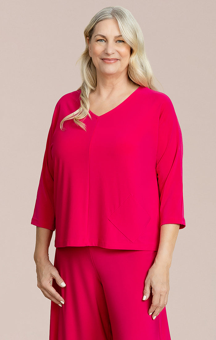 Rehaussez votre style au quotidien avec ce haut à encolure en V chic et simple, conçu avec une silhouette décontractée qui tombe magnifiquement sur le corps. Le tissu doux et fluide offre un confort tout au long de la journée, tandis que les manches trois-quarts ajoutent une touche de modernité. Ses lignes épurées et son design polyvalent le rendent parfait aussi bien pour les sorties décontractées que pour les looks plus élégants.