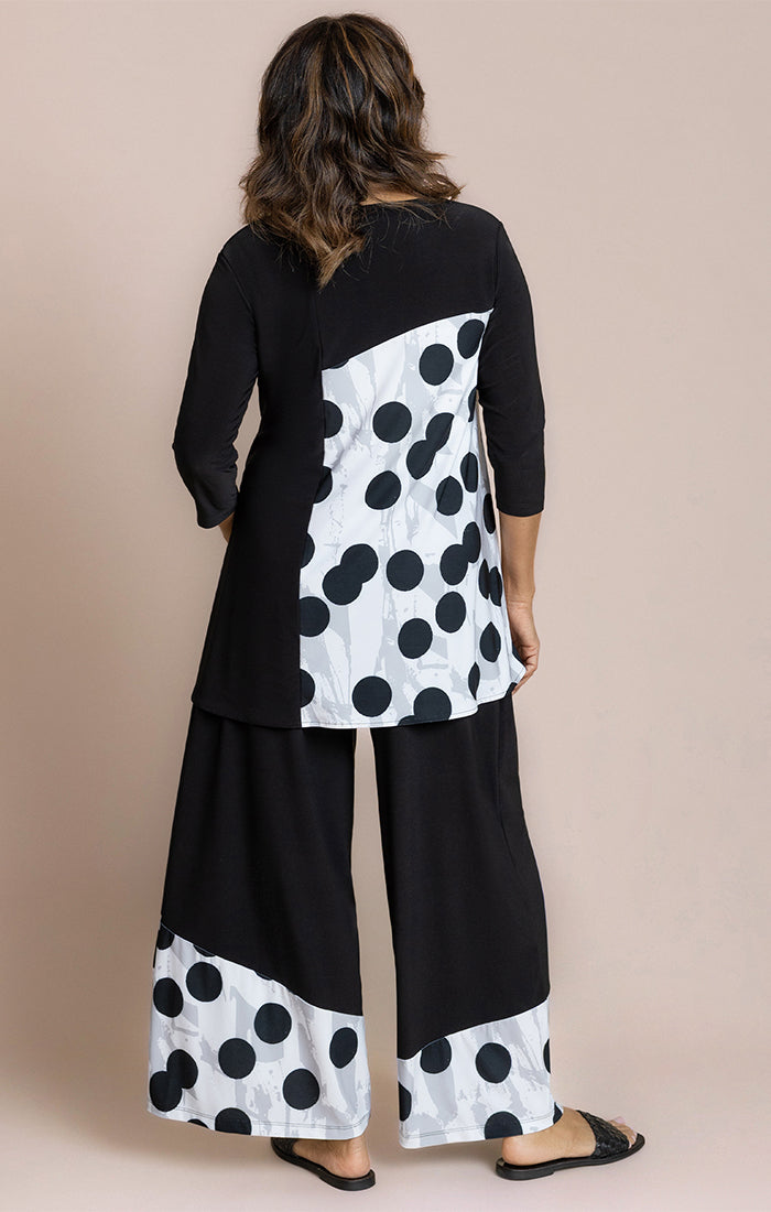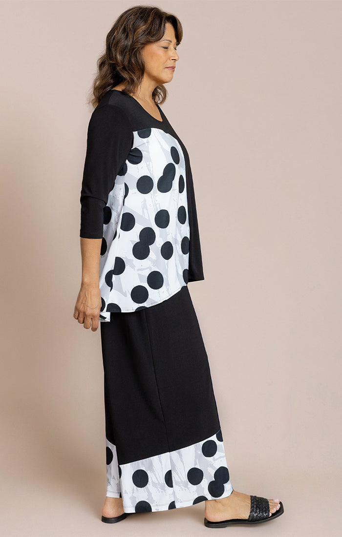 Ce haut imprimé accrocheur allie le plaisir au confort sans effort. Confectionné dans un tricot doux et extensible, il tombe magnifiquement sur le corps tout en offrant une aisance tout au long de la journée. Sa silhouette décontractée est complétée par une encolure dégagée flatteuse et des manches trois-quarts, ce qui en fait une pièce polyvalente pour des looks décontractés ou plus sophistiqués.