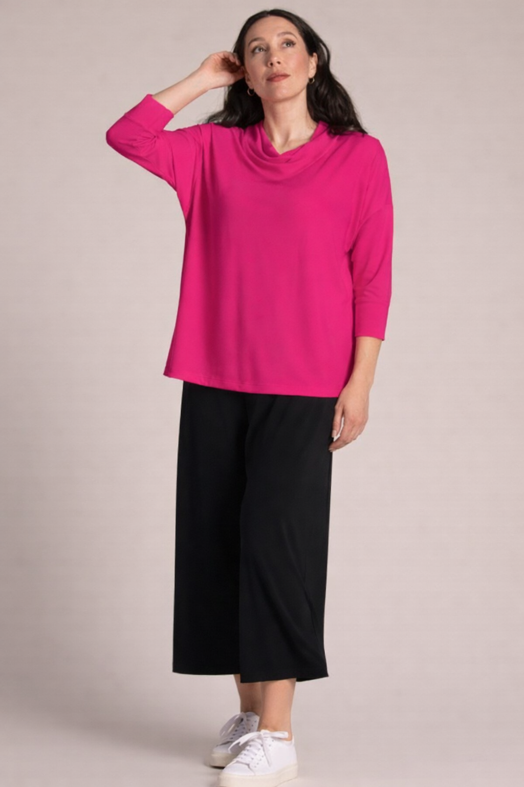 Indulge in the luxury of a 3/4 Sleeve Slouch Sweatshirt. This sophisticated piece is tailor-made for the fashion-forward individual who wants to make a statement with their wardrobe. With its relaxed fit and elegant detailing, this sweatshirt is perfect for both casual and dressy occasions.