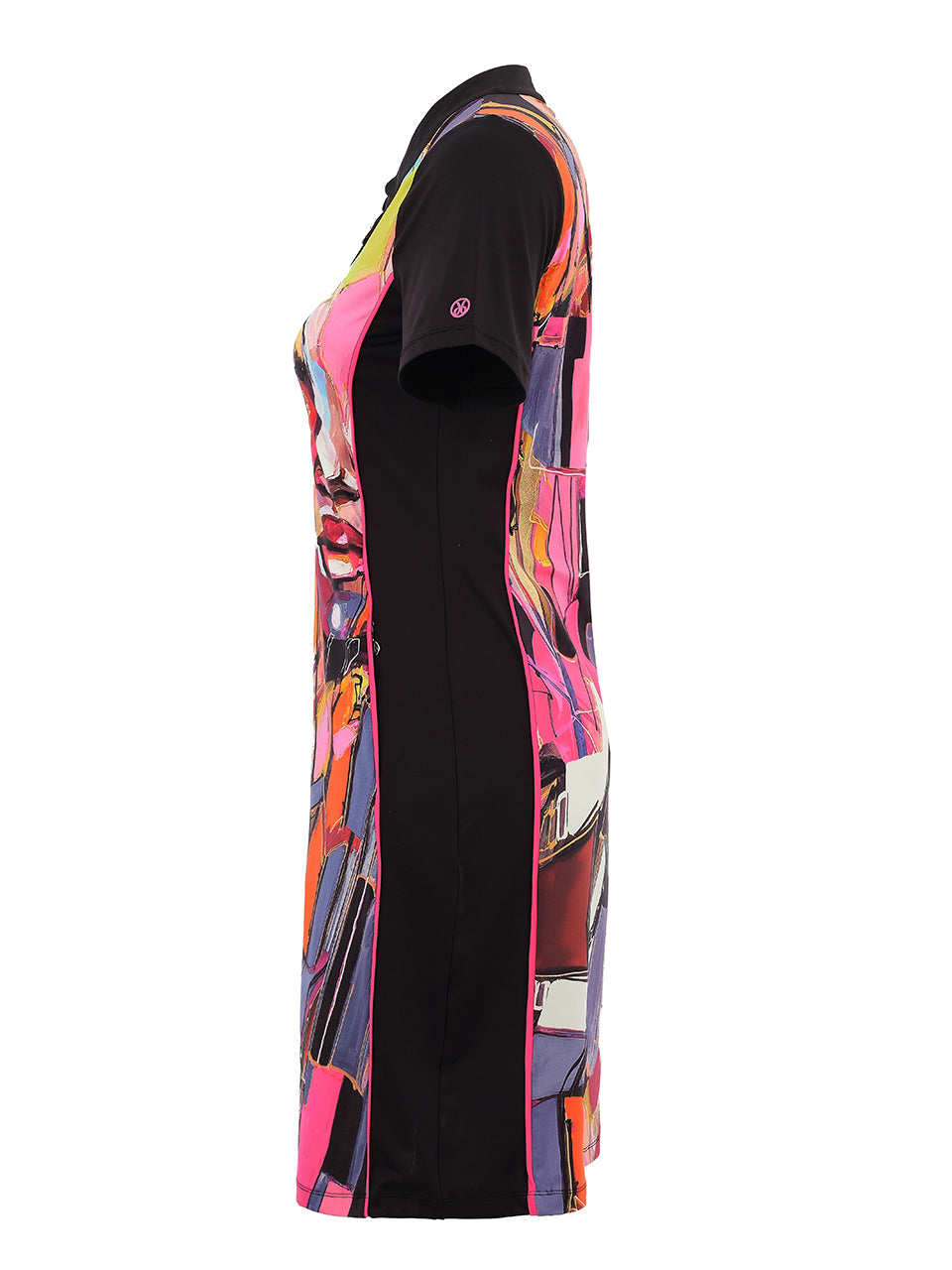 Stand out on and off the course with this striking artistic golf dress. Featuring a vibrant abstract portrait print, this sporty silhouette combines bold style with effortless comfort. The zip neckline and short sleeves add a polished athletic touch, while the flattering fit allows easy movement throughout your game. Perfect for sunny rounds, resort wear, or casual outings, this eye-catching dress brings color, confidence, and modern artistry to your golf wardrobe.