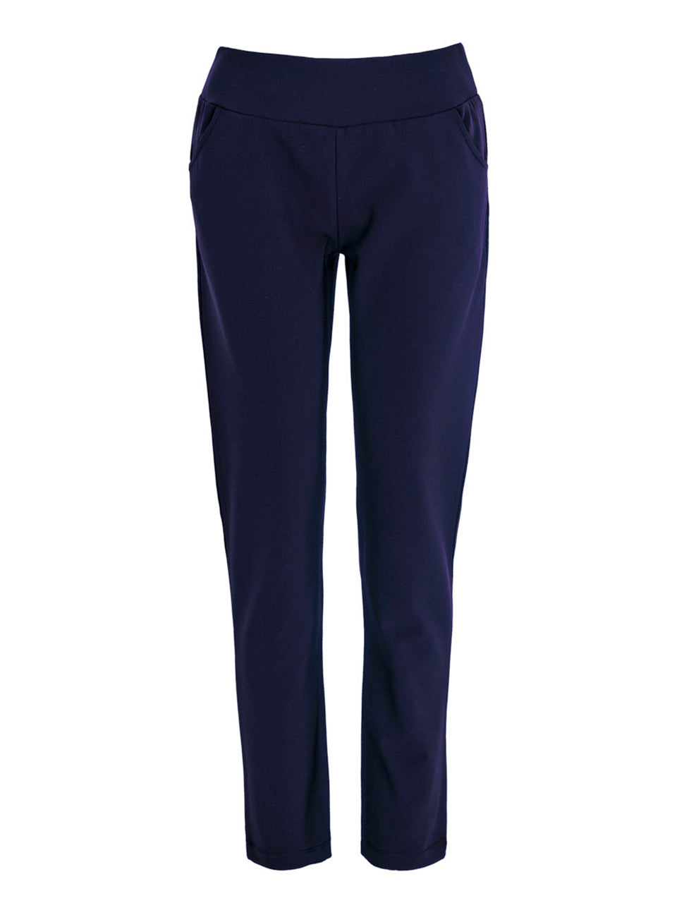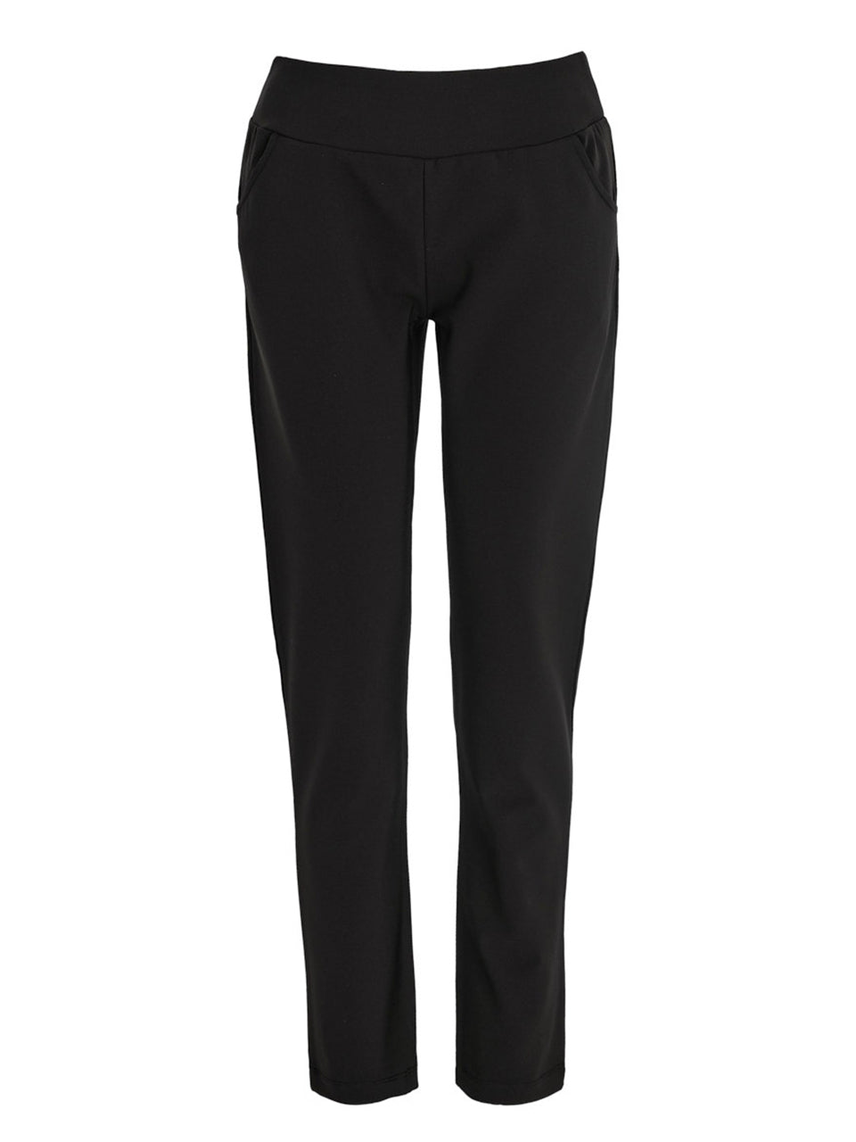 These sleek pull-on pants combine polished style with everyday comfort. Designed with a smooth elastic waistband and flattering slim leg, they offer a clean, streamlined look that moves effortlessly from work to weekend. The soft stretch fabric and discreet pockets add practicality while maintaining a refined silhouette. Perfect for pairing with blouses, sweaters, or blazers for a timeless, versatile outfit.