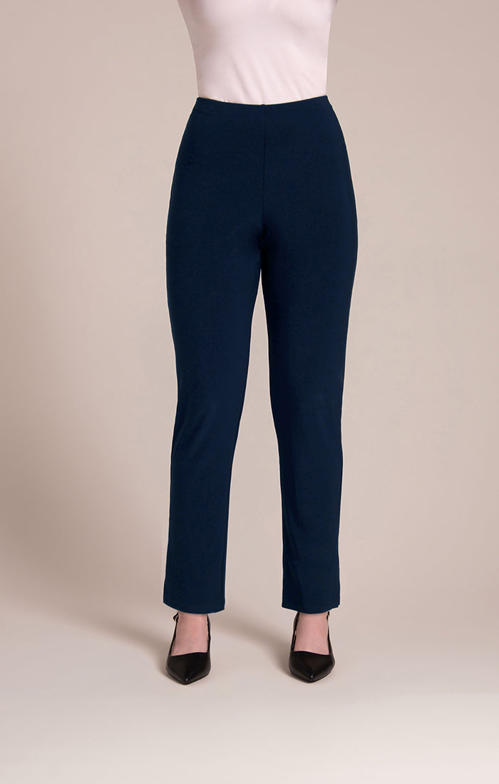 I love these pants! They look great & are so comfortable and easy to wear. The length is a little longer which I like; I'm 5'6 and so many pants these days end up short. I have 2 pairs in black & would love to have them in navy!