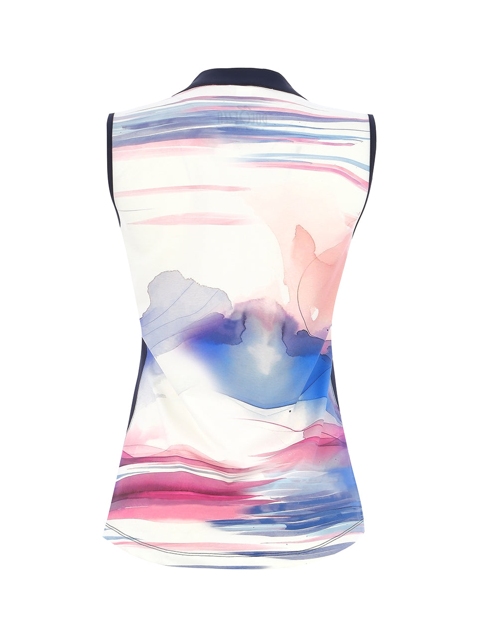 A sporty sleeveless polo top featuring an elegant watercolor-style golf illustration. Designed with a flattering V-neck collar and streamlined silhouette, it offers lightweight comfort and easy movement throughout the day. Perfect for the course or casual resort wear, this artistic piece blends athletic performance with graceful style. ⛳