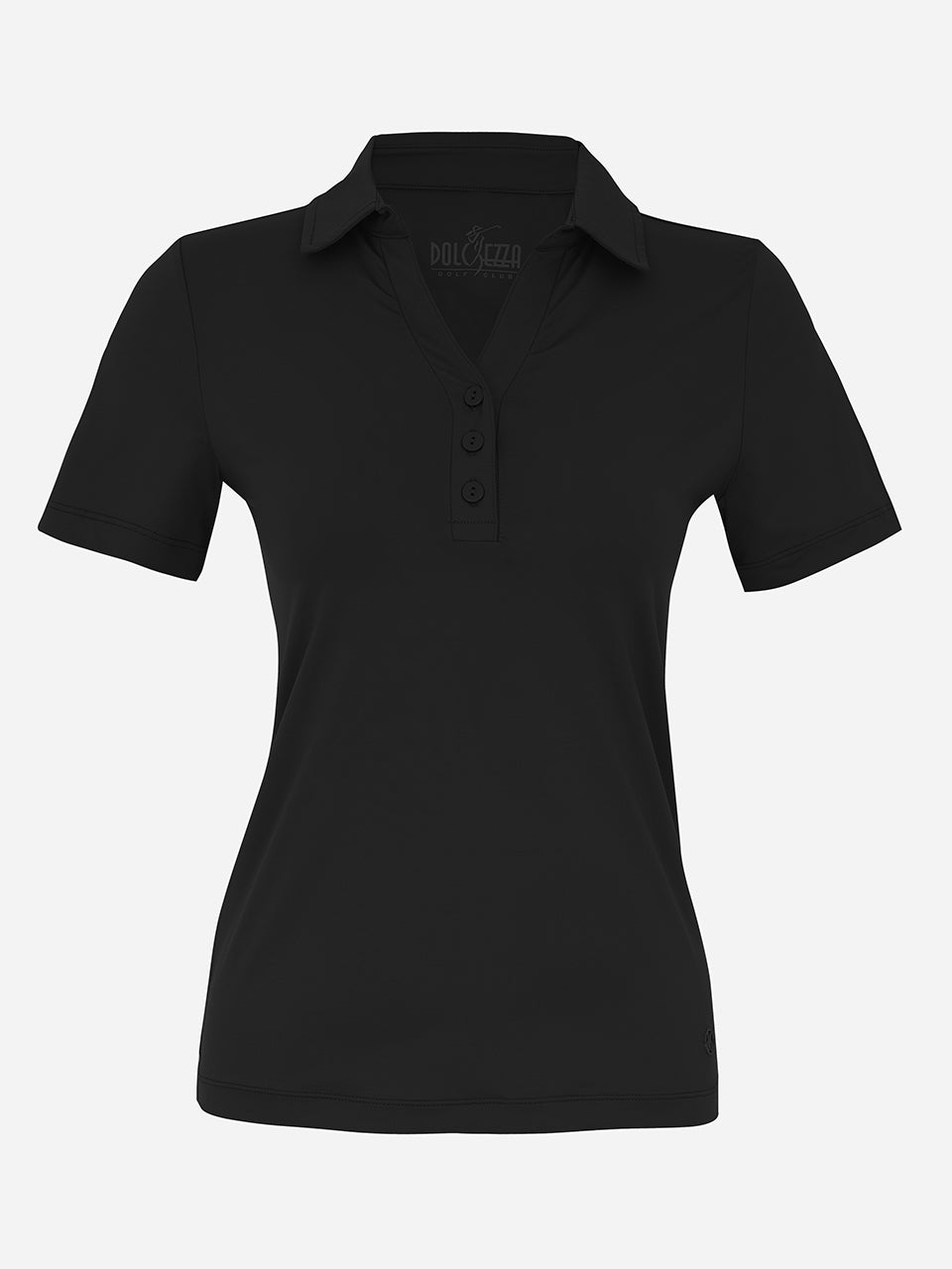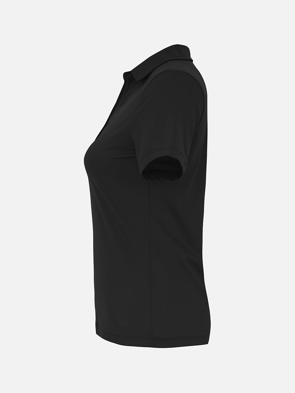 A sleek and versatile polo designed for effortless style and comfort. Featuring a classic collar, buttoned placket, and short sleeves, this top offers a clean, flattering silhouette. Made from smooth stretch fabric that moves with you, it’s perfect for active days on the course or polished casual wear off the course.