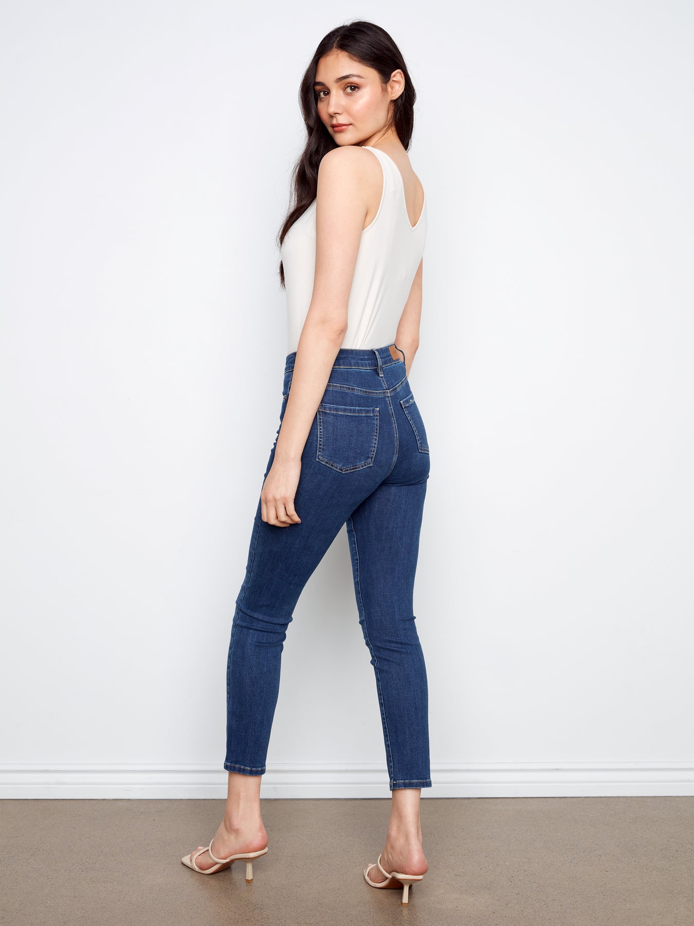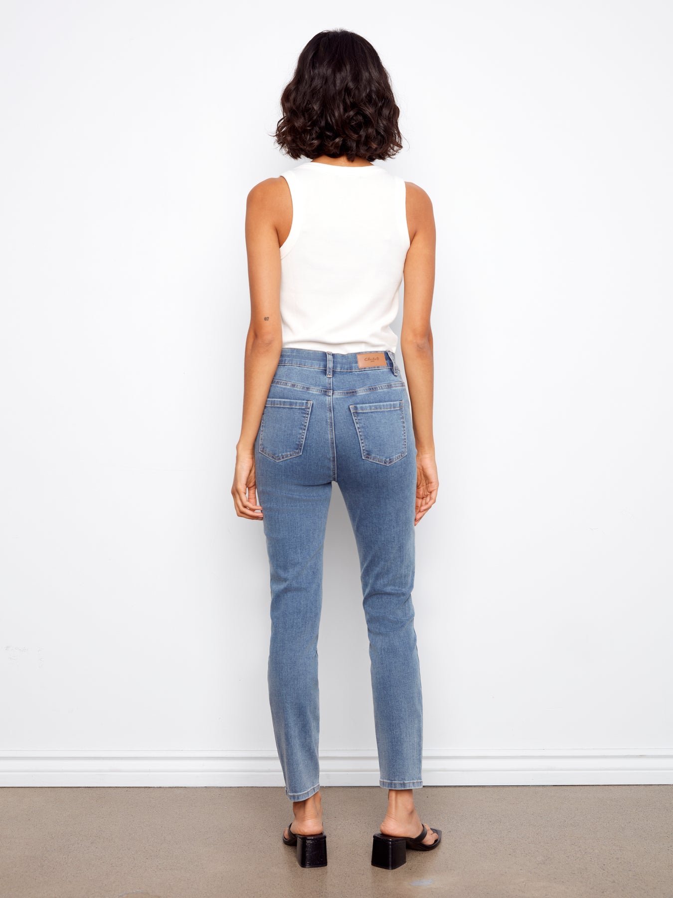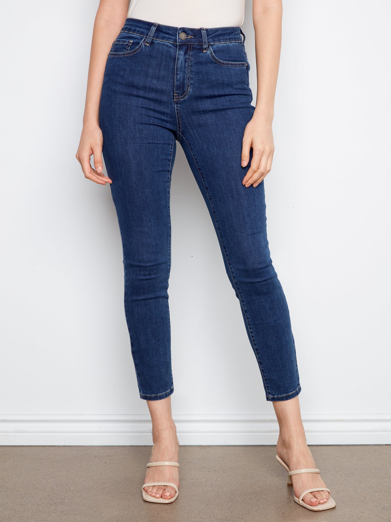 The Claudia Slim Leg Jeans combine timeless denim styling with a sleek, modern fit. Designed with a flattering slim leg silhouette, they feature a classic five-pocket construction, a comfortable mid-to-high rise, and soft stretch denim for easy movement throughout the day. The clean, versatile look makes them an effortless choice for dressing up with heels or keeping casual with everyday basics.