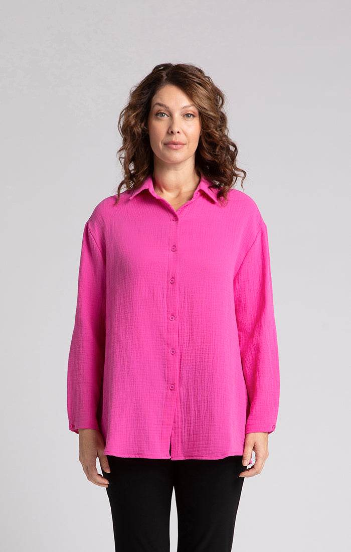 A classic statement piece that is versatile enough to wear with just about anything. The Cotton Gauze Easy Shirt is an elegant and timeless addition to your wardrobe. With its versatile design, you can effortlessly pair it with any outfit, from casual to sophisticated. It's the perfect combination of style and functionality, making it a must-have for any fashion-forward individual.