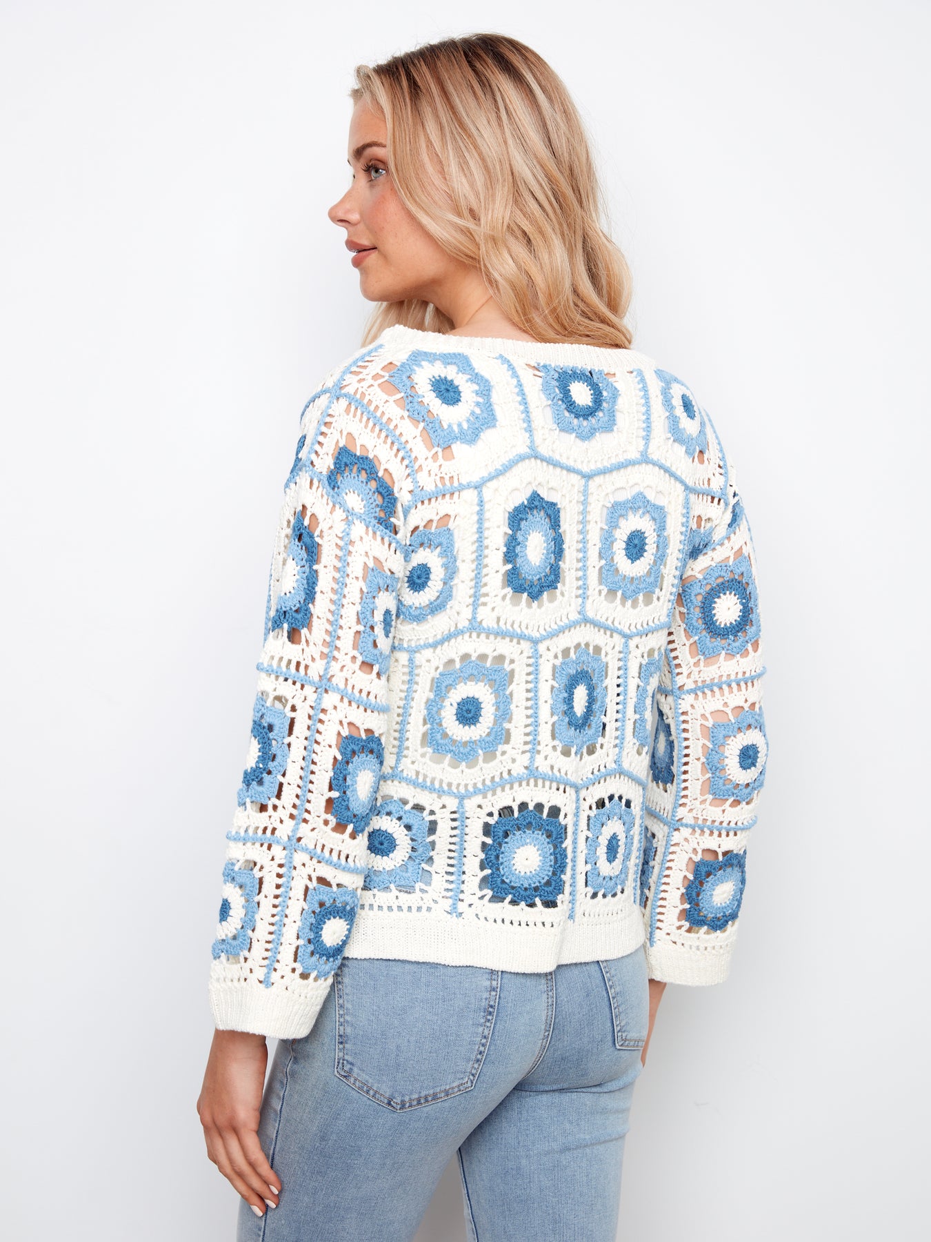 Drop Shoulder Floral Crochet Sweater Charlie B