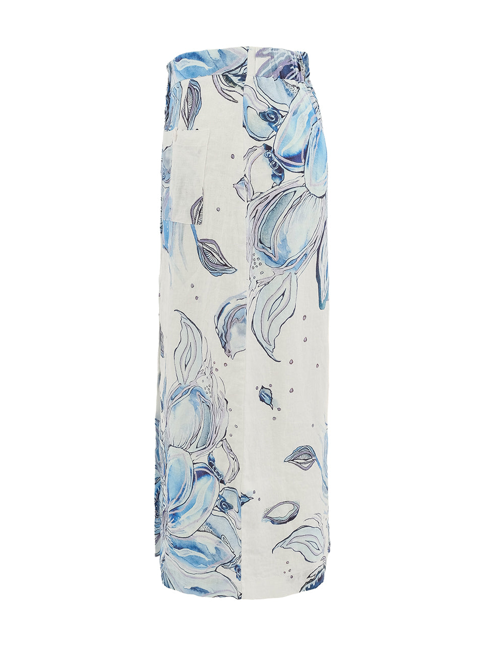 This elegant midi skirt features a soft blue floral print inspired by hand-drawn botanical sketches. Designed in a flattering straight silhouette, it falls just below the knee for a polished yet feminine look. The watercolor shades of blue and ivory create a fresh, airy feel that pairs beautifully with matching tops or simple solids. Comfortable and easy to wear, this skirt blends artistic charm with everyday sophistication.
